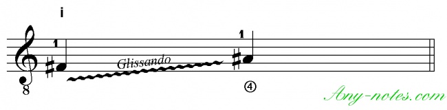 Глиссандо (от итал. glissando, от фр. glisser — скользить) — исполнительский прием, заключающийся в переходе с одного звука на другой посредством плавного скольжения, без выделения отдельных промежуточных ступеней. В нотной записи обозначается чертой или волнистой линией между начальным и конечным звуками.